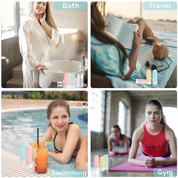 - Safe & Easy to Use: Our travel bottles are made of food grade BPA Free plastic, this travel set is sturdy, soft, squeezable, flexible and reusable. Safe material guarantee that you can use them to store shampoo, conditioner, face soap, sunscreen, creams, lotion or etc safely. Soft body make you squeeze out contents easily. Bigger bottlenecks are easier to fill and clean.