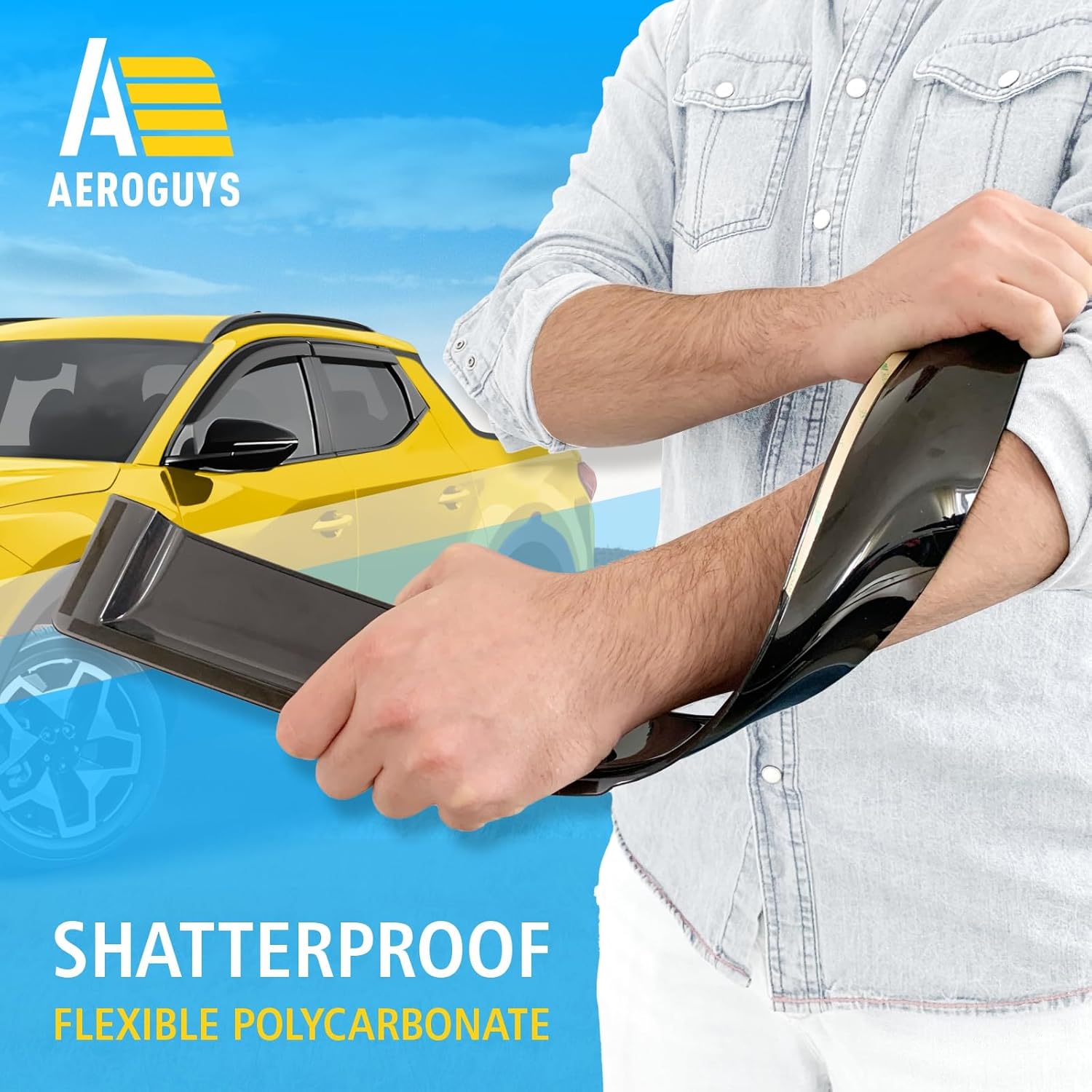- Incredibly Durable AEROGUYS Auto Window Deflectors – They are made with strong and tough polycarbonate which is clear and scratch-resistant. They also provide UV protection making your ride more comfortable under all weather conditions.