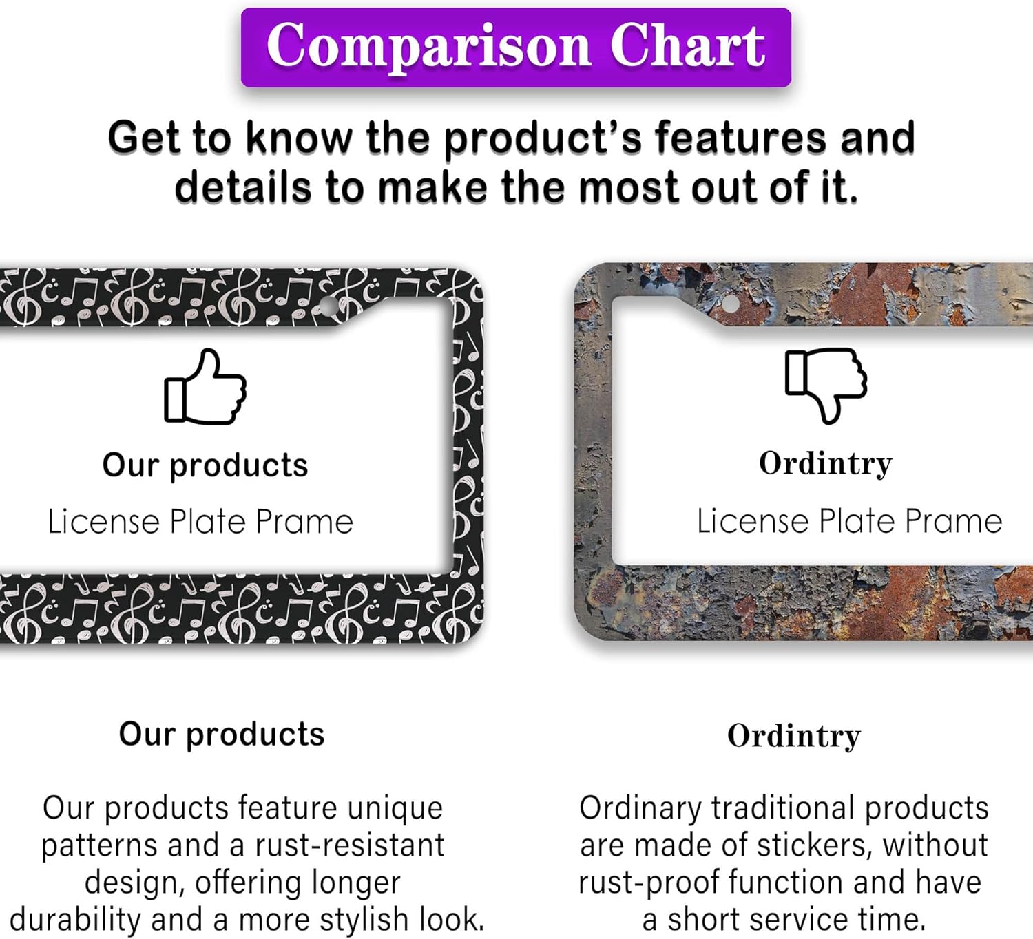 License Plate Cover for Car Black and White License Plate Frames Music Musical Note Aluminum Metal Car Accessory 2 Pack with Screw Covers Set