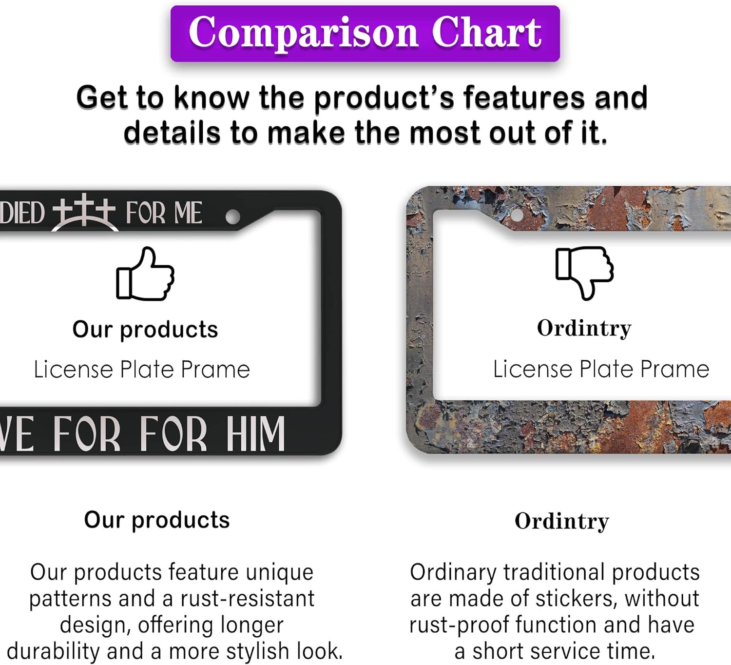 Fun License Plate Frame Cover Black and White License Plate Frames He Died for Me I’ll Live for Him Aluminum Metal Car Accessory 2 Pack with Screw Covers Set