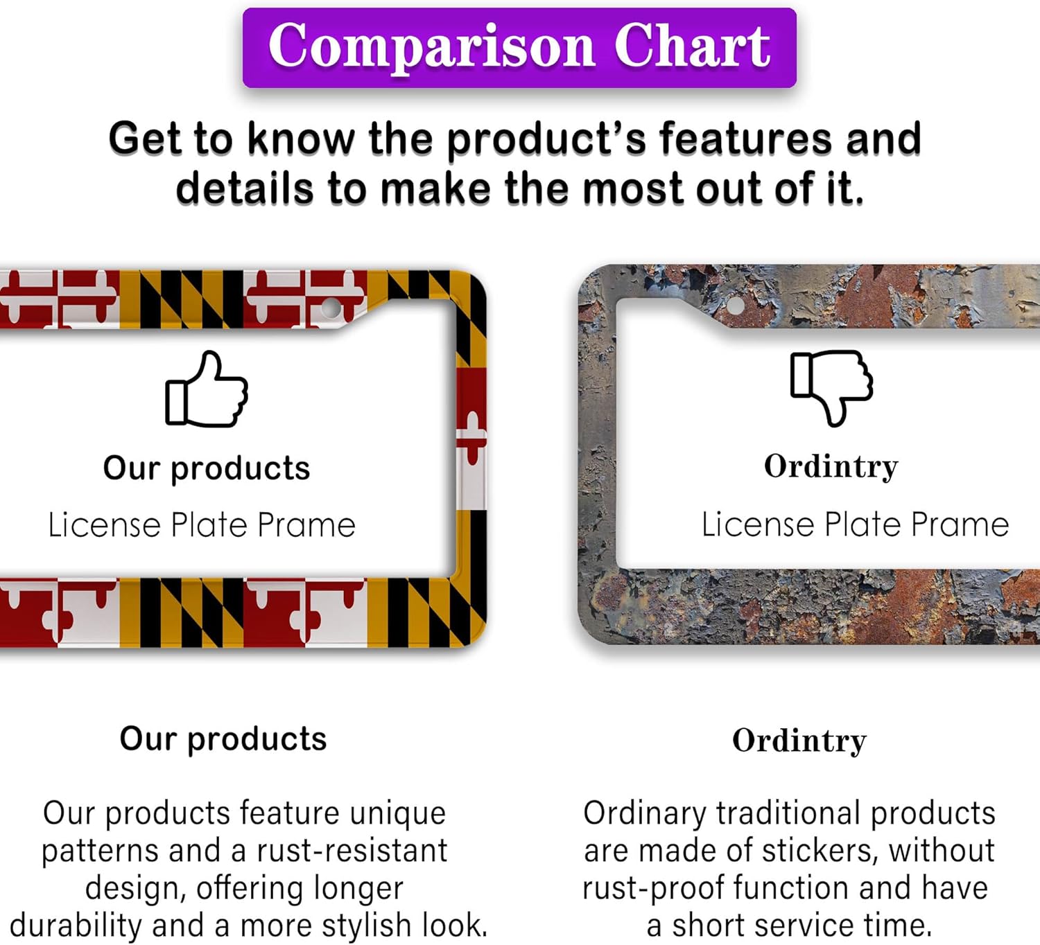 Front License Plate Bracket Multicolor License Plate Frames Flag of Maryland Universal Aluminum Car Accessory 2 Pack with Screw Covers Set