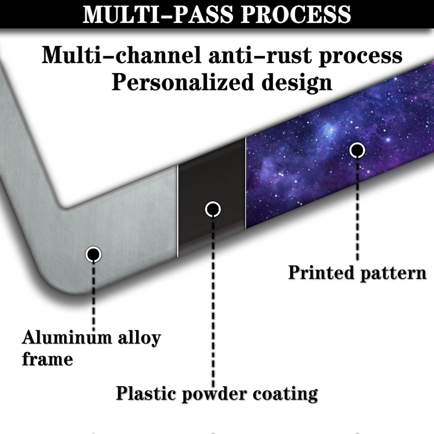 License Plate Frames for Men Multicolor License Plate Cover for Women Galaxy Aluminum Metal Car Accessory 2 Pack with Screw Covers Set