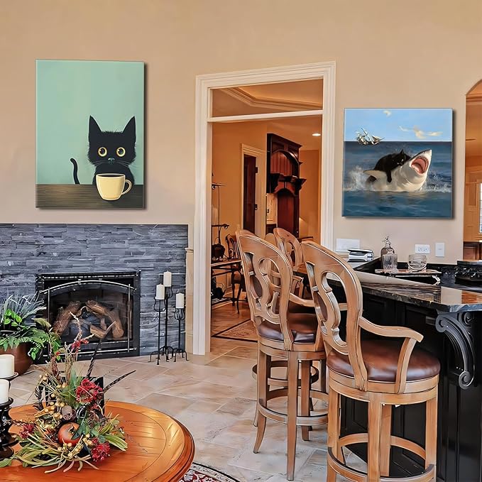 - 【High-Quality Canvas Print】: Our black cat wall art is printed on high-quality canvas, ensuring vibrant colors and sharp details. The sturdy frame provides durability, making it a long-lasting addition to your home or business decor.