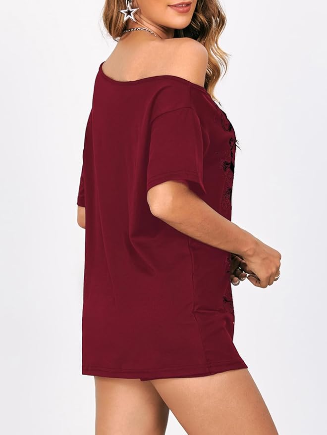 SOLY HUX Women's Off The Shoulder Tops Graphic Tees Y2k Vintage Gothic Oversized T Shirts Streetwear
