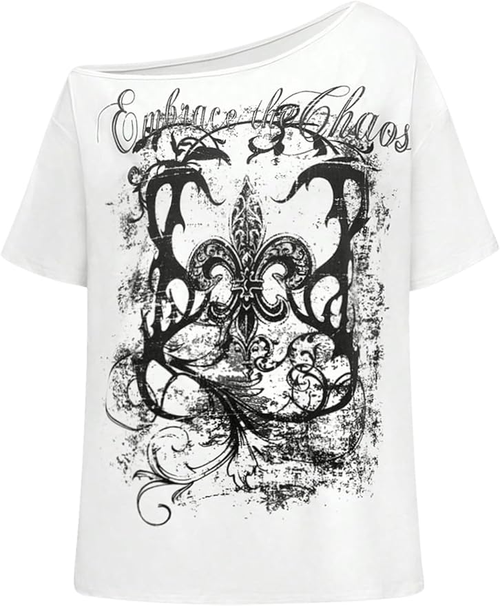 SOLY HUX Women's Off The Shoulder Tops Graphic Tees Y2k Vintage Gothic Oversized T Shirts Streetwear