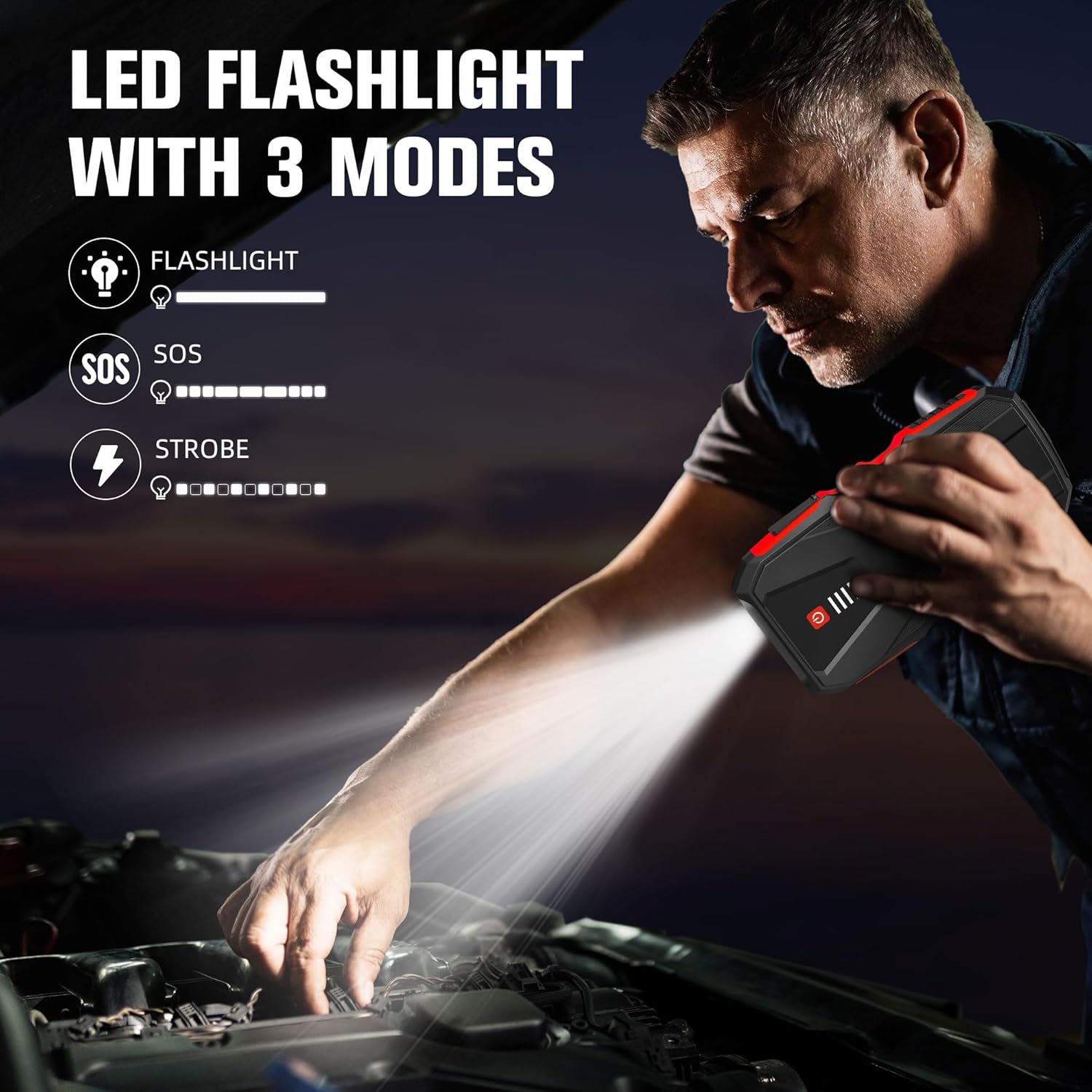 - 【More than car jump starter】More than a car battery starter, ASPERX Car Starter designed with Type-C Input/Output, the quick charge USB port can fully charge your cells, tablets, and more at the fastest (up to 50% faster than a standard charger). AX3000 jump starter is your best choice.
