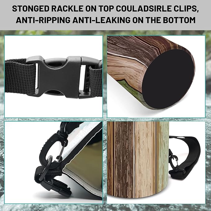 - Adjustable Carrying Options: Available in 5L and 10L with a removable shoulder strap for cross-body carry, or a 20L version featuring two adjustable straps for backpack-style comfort.Roll-top closure system provides secure watertight seal, keep your gear dry in any wet situation.Unique Teal Green Brown design dry bag backpack Carry it your way!