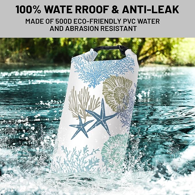 Waterproof Dry Bag,Roll Top Nautical Coastal Ocean Beach Seashell Starfish Waterproof Backpack 5L/10L/20L Floating Lightweight Bags for Kayaking, Boating, Swimming Camping with Waterproof Phone Case