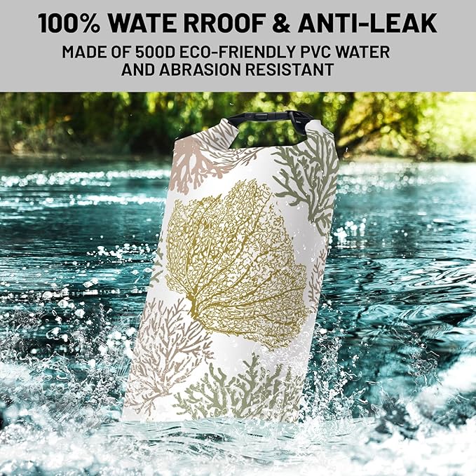 Waterproof Dry Bag,Roll Top Coastal Summer Beach Coral Small Waterproof Backpack 5L/10L/20L Floating and Lightweight Bags for Kayaking, Boating, Fishing, Swimming and Camping