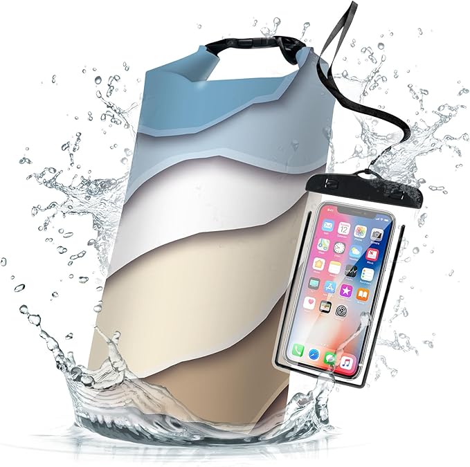 - Adjustable Carrying Options: Available in 5L and 10L with a removable shoulder strap for cross-body carry, or a 20L version featuring two adjustable straps for backpack-style comfort.Roll-top closure system provides secure watertight seal, keep your gear dry in any wet situation.Unique Aesthetic Abstract design dry bag backpack Carry it your way!