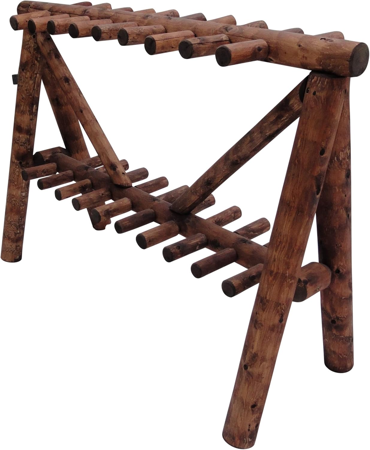 21-Place Freestanding Log Ski Rack Holder, Indoor & Outdoor Snowboard Racks, Standing Storage, Garage Racks for Snow Skis & Poles, Snowboard Rack Garage Storage Organizer-Canyon Brown + 15" Anchor Kit