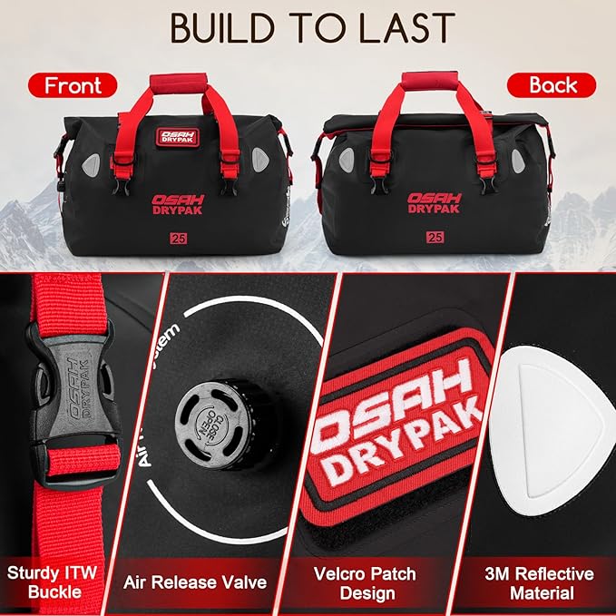 • WATERTIGHT PROTECTION: OSAH DRYPAK duffel bag is made of durable high-strength PVC, which is completely waterproof & snowproof. Ideal weekender bag for all your sailing, fishing, camping, sporting, boating, and motorcycling travel adventures.