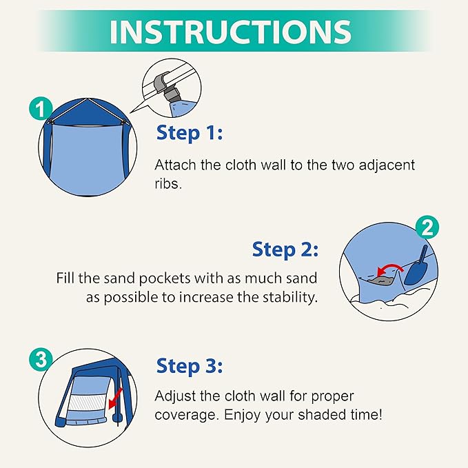 - Easy Attachment & Universal Fit: Equipped with sturdy straps and hooks, the sunwall is easy to attach and compatible with most standard beach cabanas, ensuring a secure and snug fit