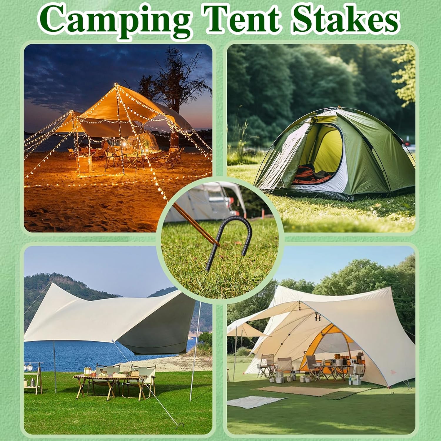 - 【EXCELLENT QUALITY】These rebar stakes are constructed from heavy-duty galvanized steel, featuring a black powder coating that effectively prevents rust. The premium quality of the heavy duty tent stakes ensures durability, while the J-shaped design provides exceptional gripping and anchoring capabilities, ensuring stability for your outdoor structures.