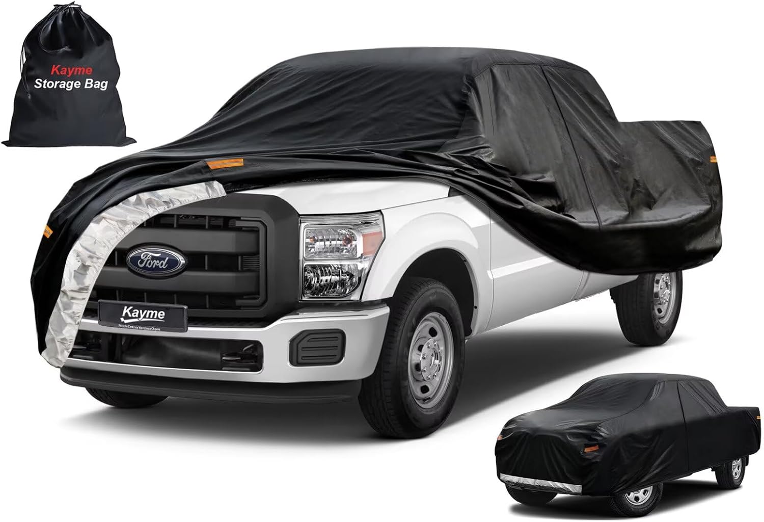 Kayme Truck Cover Custom Fit Ford F-250(2017-2025) Regular Long Bed. Full Exterior Heavy Duty Outdoor Pickup Truck Car Cover Waterproof All Weather.Car Tarp for Wind Sun Dust Protection.Black