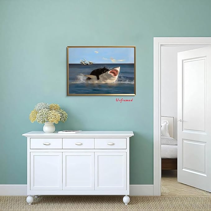 - 【Perfect Gift Idea】:The framed black cat and shark wall art set makes a fantastic gift for friends and family who love cats, sharks, or humorous art. Whether for birthdays, housewarmings, or special occasions, these prints are sure to bring a smile to anyone's face. Ideal for anyone who appreciates meme art, the black painting, or just wants a unique and funny cat poster for their home.