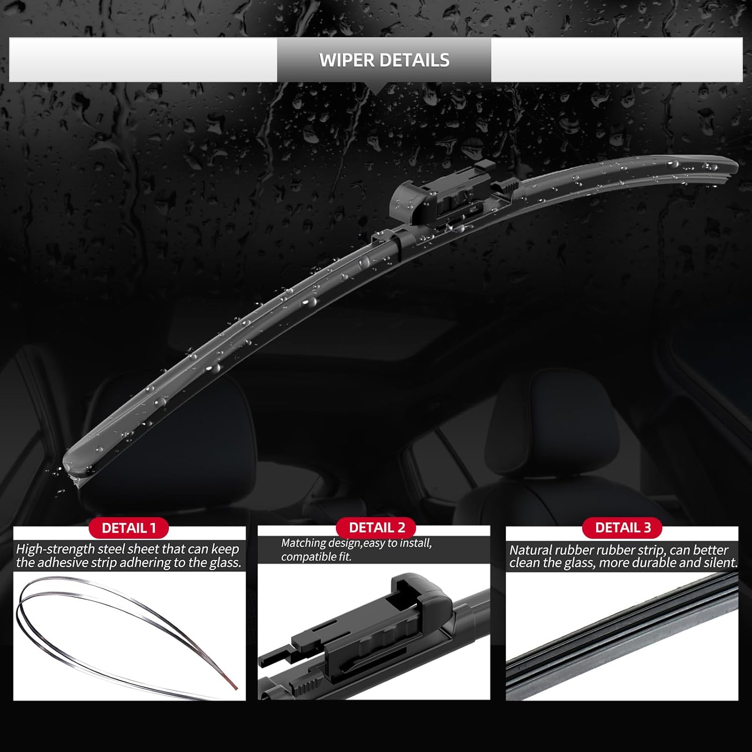 - Durable and Long-Lasting: Built with high-quality materials to resist wear and tear. These windshield wiper blades offer reliable performance over time