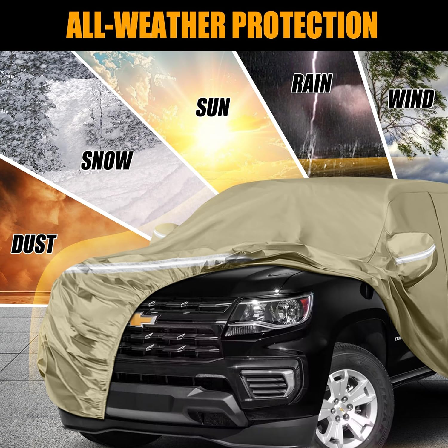 - Compatible with: This Truck Cover Replace for for 2005-2025 Toyota Tacoma, Ford Ranger, Nissan Frontier, GMC Canyon, Chevrolet Colorado, Honda Ridgeline Double Cab 5ft/ Crew Cab-5ft Bed (Mid-size truck body length is within Up to 213').. Tan Color design suitable for Suburban environments, and fully protects your car like a mobile garage