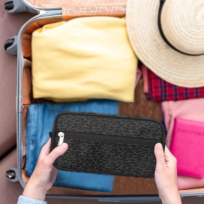 - 【Large Capacity Hanging Toiletry Bag】The black leopard makeup bag for boys mens has a large main zipper compartment for storing all other small items needed,such as cosmetics,razors,travel toiletries,etc;The outer layer has a zippered small pocket suitable for storing cash,cards,passports,phones,snacks,and other small items that can be conveniently carried around.