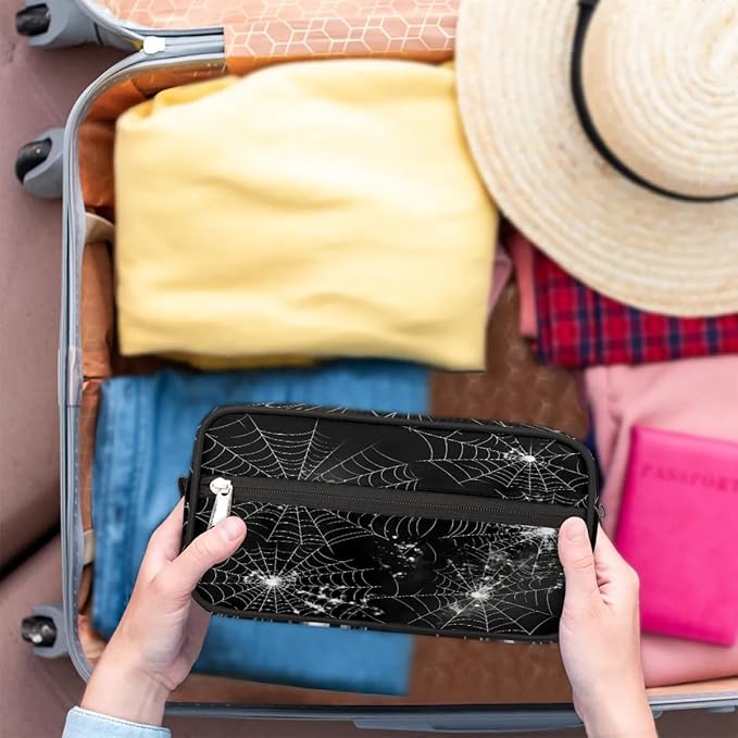 - 【Large Capacity Hanging Toiletry Bag】The spiders web makeup bag for boys mens has a large main zipper compartment for storing all other small items needed,such as cosmetics,razors,travel toiletries,etc;The outer layer has a zippered small pocket suitable for storing cash,cards,passports,phones,snacks,and other small items that can be conveniently carried around.