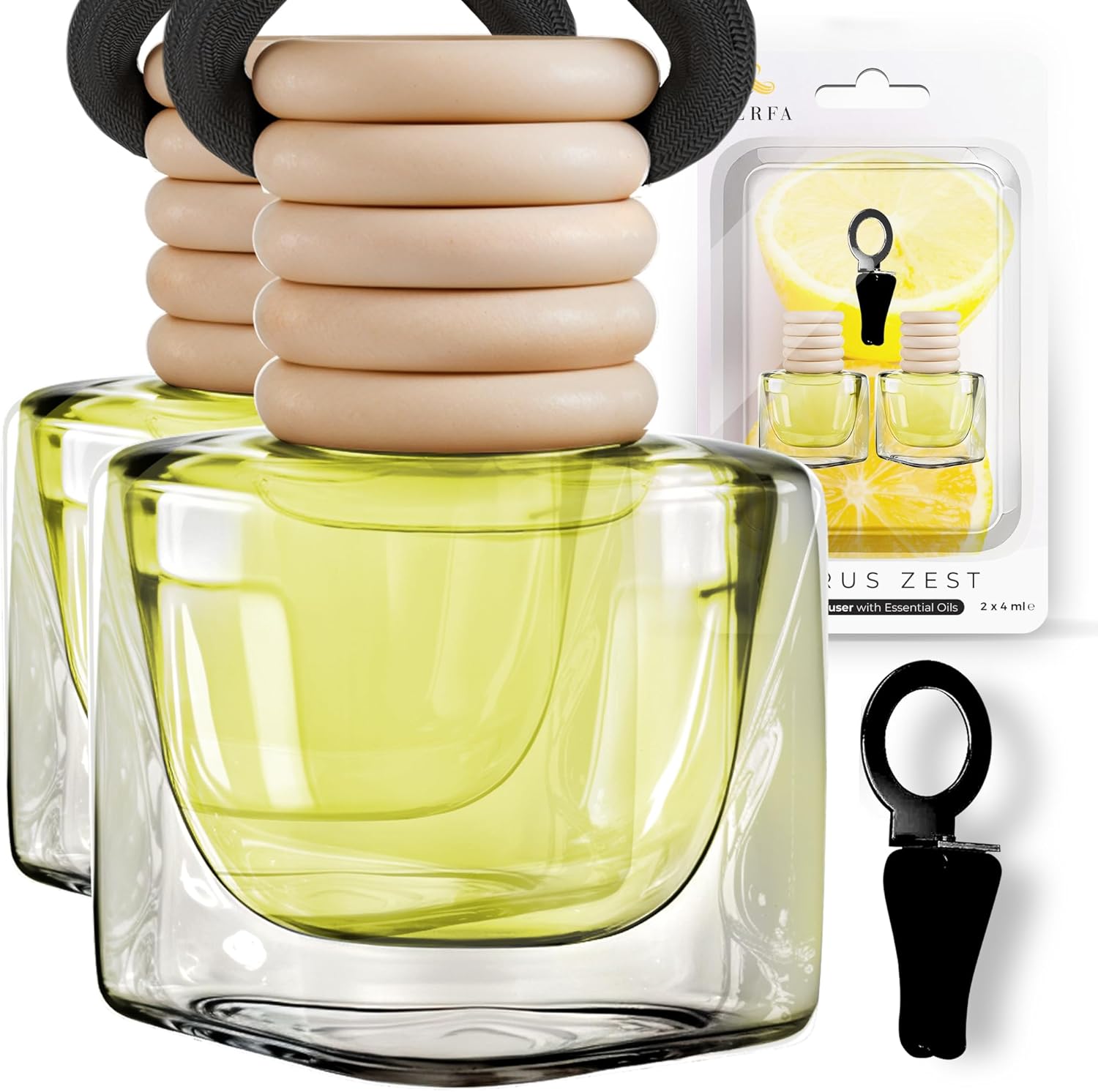 - INFUSED WITH ESSENTIAL OILS - Our car vent air freshener is expertly crafted with the finest citrus oil. This premium car freshener and car oil diffuser enhances your driving experience with a soothing and long-lasting scent. Perfa’s car freshener diffuser goes beyond the ordinary, creating a therapeutic atmosphere that promotes focus and relaxation while on the road.