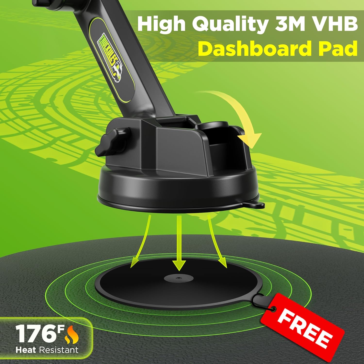 - 🔒【𝐃𝐚𝐬𝐡𝐛𝐨𝐚𝐫𝐝 𝐏𝐚𝐝 𝐋𝐨𝐜𝐤𝐞𝐝 𝐈𝐧】– 4.53-inch VHB pad with ultra-strong 3M adhesive, built to handle 176°F heat and rough roads without warping or falling—perfect for semis, container trucks, and big rigs.
