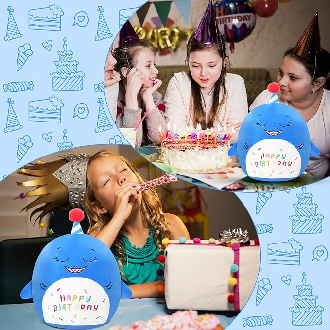 - 【Creative Plush】 The Birthday shark stuffed animal has a lovely facial expression, it wears a birthday hat on its head, and on its belly are embroidered the words "HAPPY BIRTHDAY", a cute appearance full of attraction.
