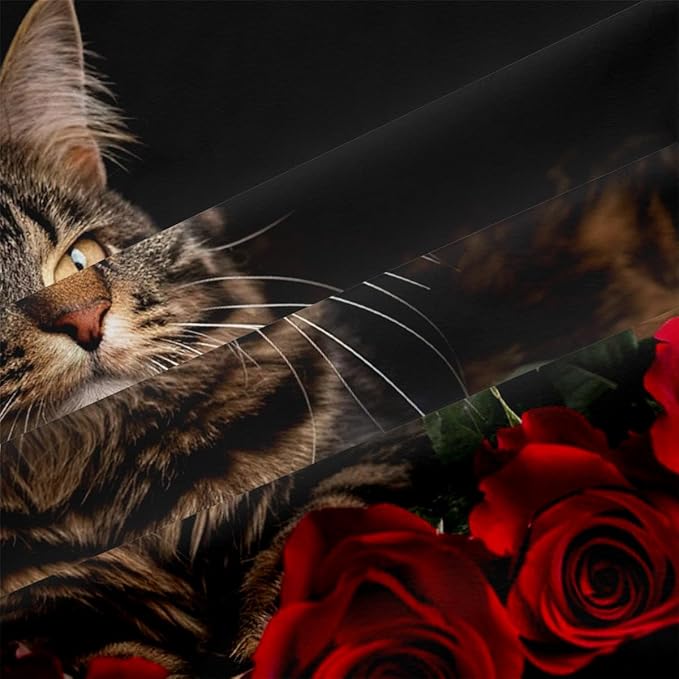 Black Cat Comforter Set Queen Cute Cats Bedding Set for Kids Girls Boys Teen Red Rose Bedding 3Pcs Kawaii Animal Bed Set Soft Down Alternative Comforter Sets with 2 Pillowcases