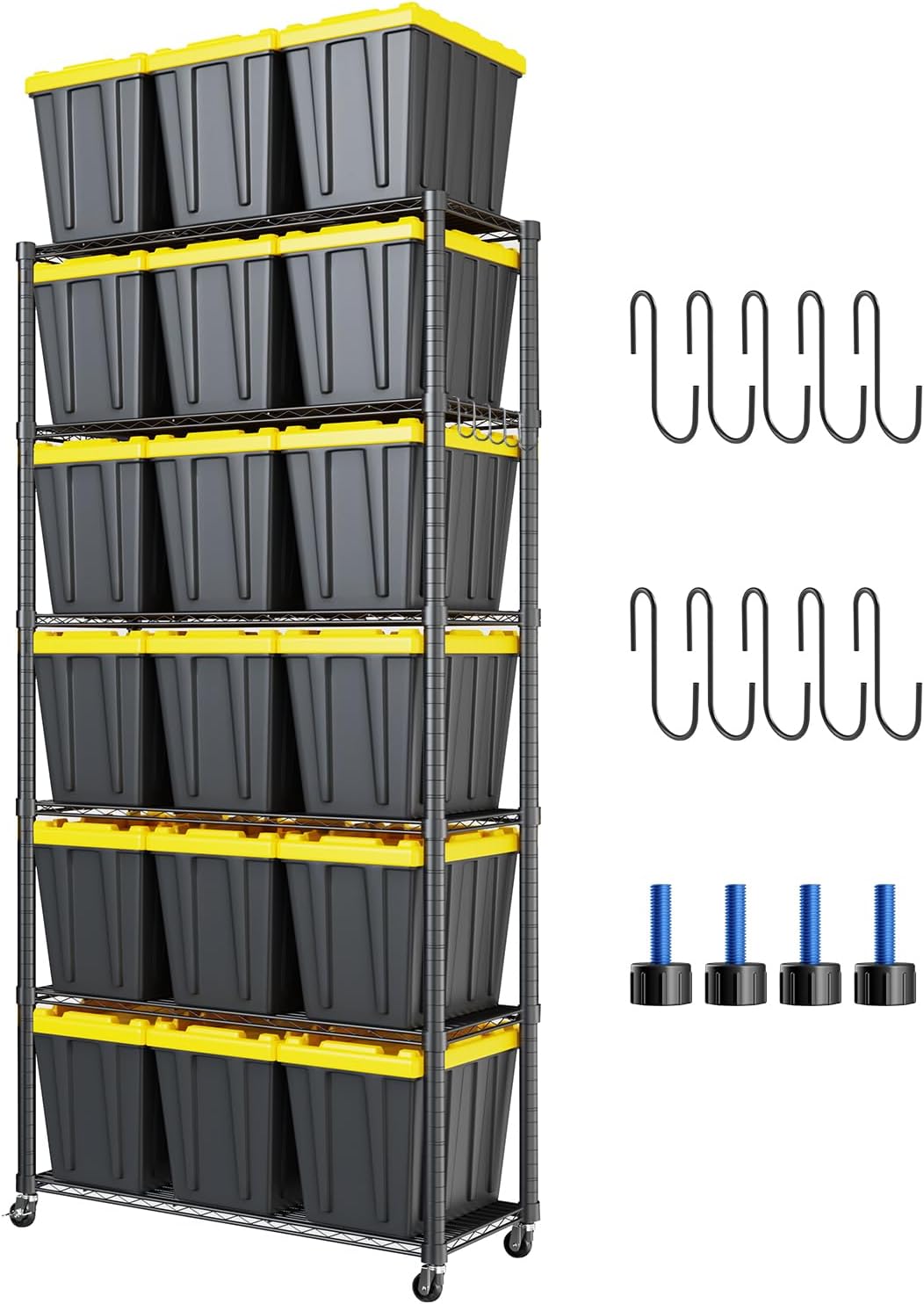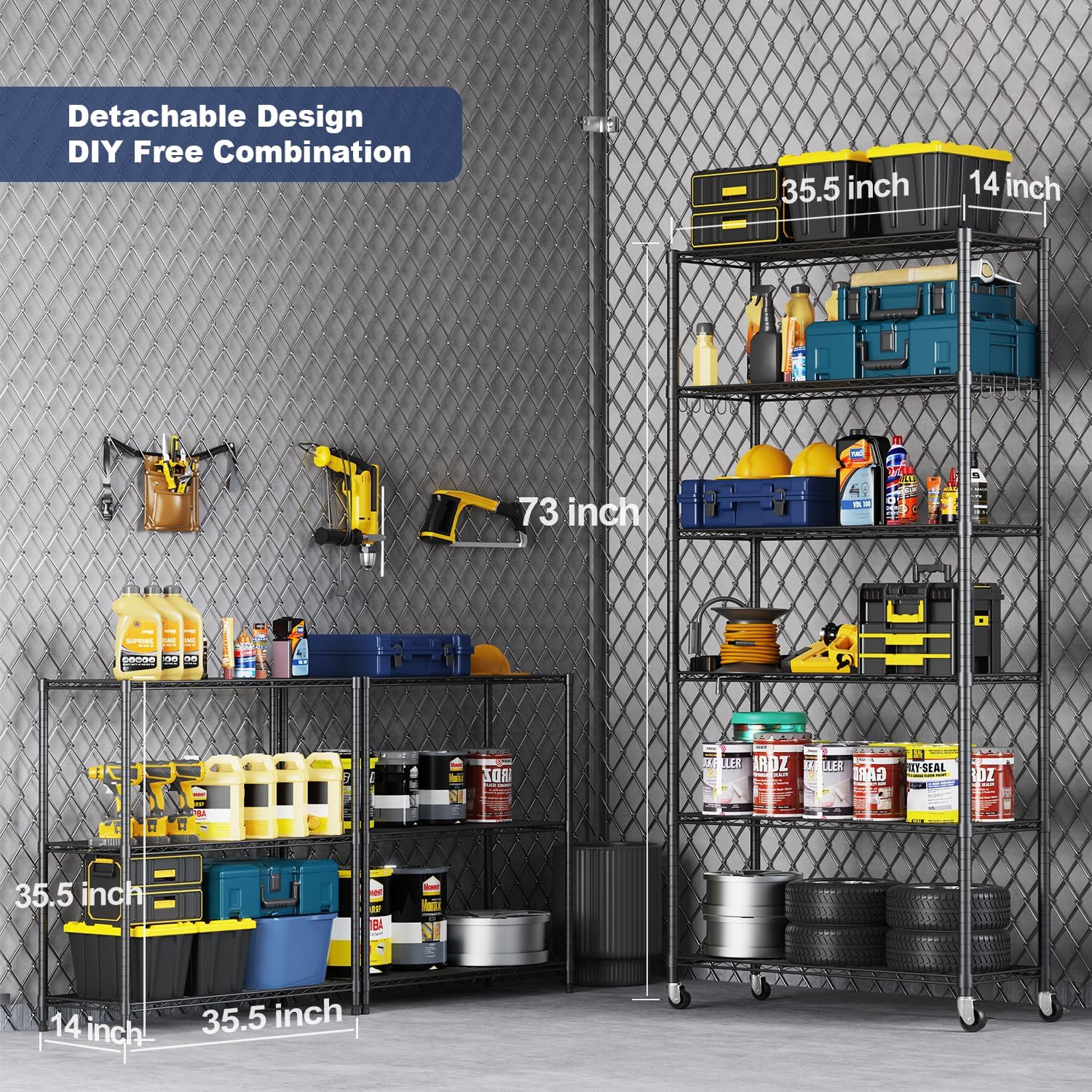- 【DIY detachable design】Do you want to have a garage shelves that can be personalized? You can unscrew the connector in the middle of the 6-Tier wire rack and turn it into two 3-Tier storage shelves. In addition, The side hook accessories can also be used.