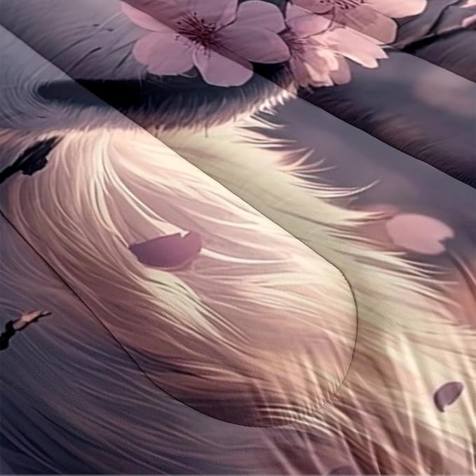 White Wolf Bedding Queen Size Grey Pink Cherry Blossom Comforter Set Wildlife Wolves Comforter Safari Animal Bedding for Kids Girls Boys Teens, Soft Lightweight Comforter Sets 3Pcs