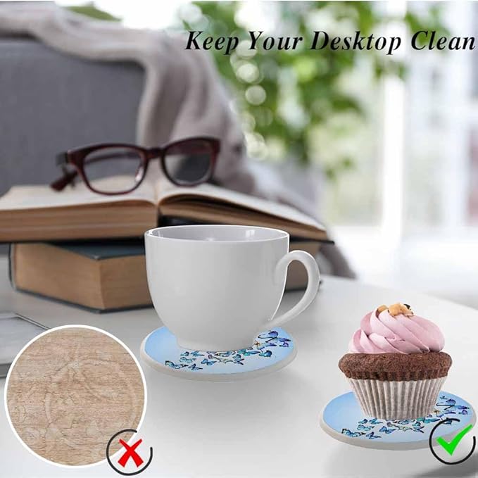 Butterflies Coasters for Drinks Nature Blue Butterflies Coasters for Table Ceramic Absorb Stone Coasters with Coffee Table Cork Base for Home Decor 2 Pcs