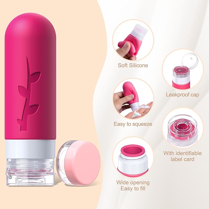 - 🥇【Tsa Approved Leak Proof Travel Bottles】The silicone bottles are designed with 3-layer leak-proof with a sturdy flip-top lid and a drip-free valve to protect your bottle from spills, leaks or drips during transport.Prevent your expensive cosmetics from leaking during travel, with our unique leak-proof design.