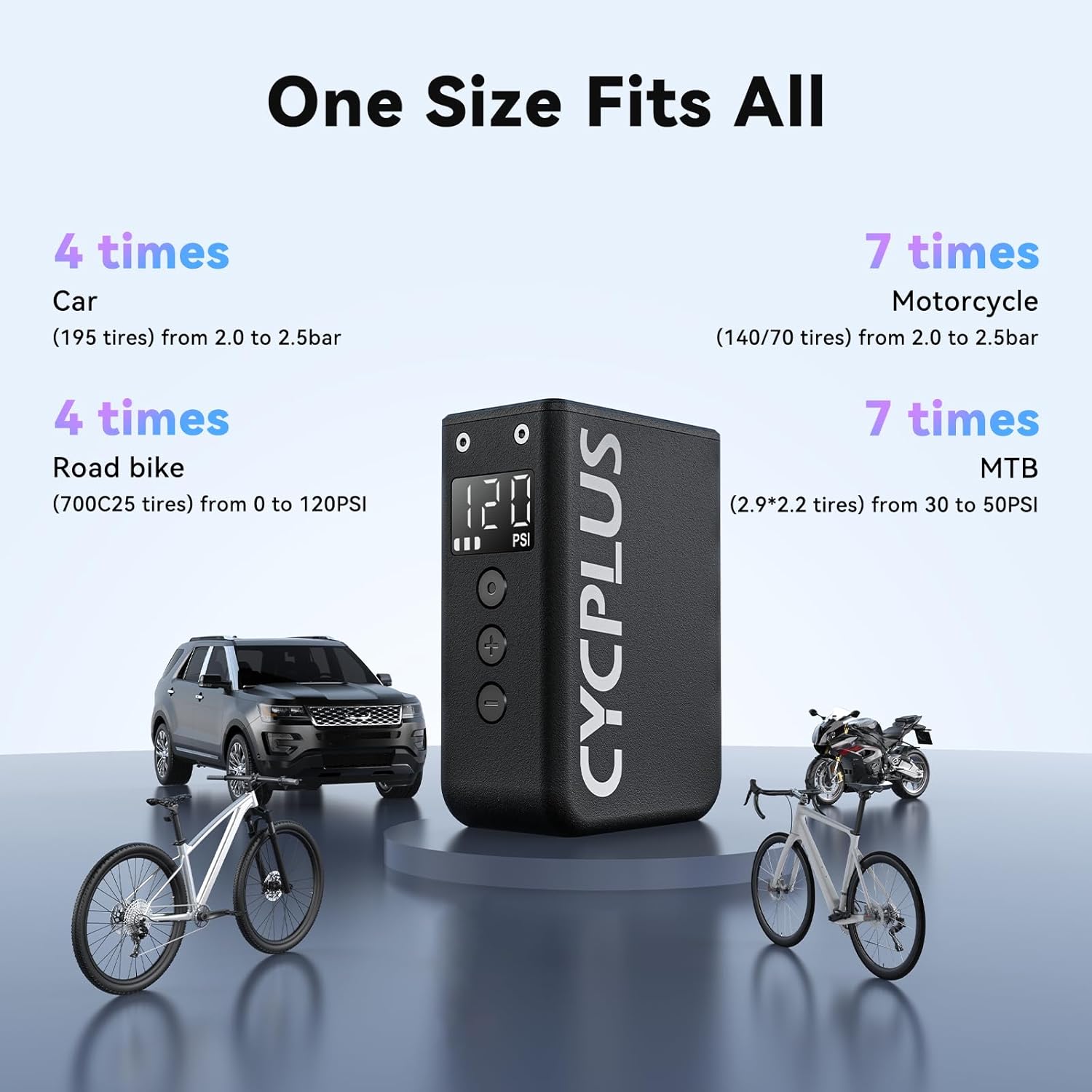 CYCPLUS Tiny Pump Mini with Gauge, Max 120 PSI Cordless Bicycle Air Pump, Auto Stop, with Presta and Schrader Valve for Car, Motorcycle, Bike and Ball AS2 Pro Max(2025 Updated Version)