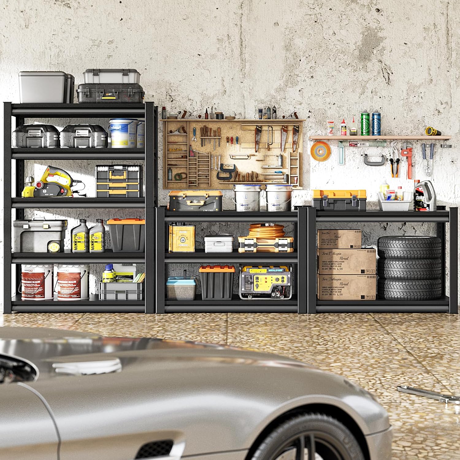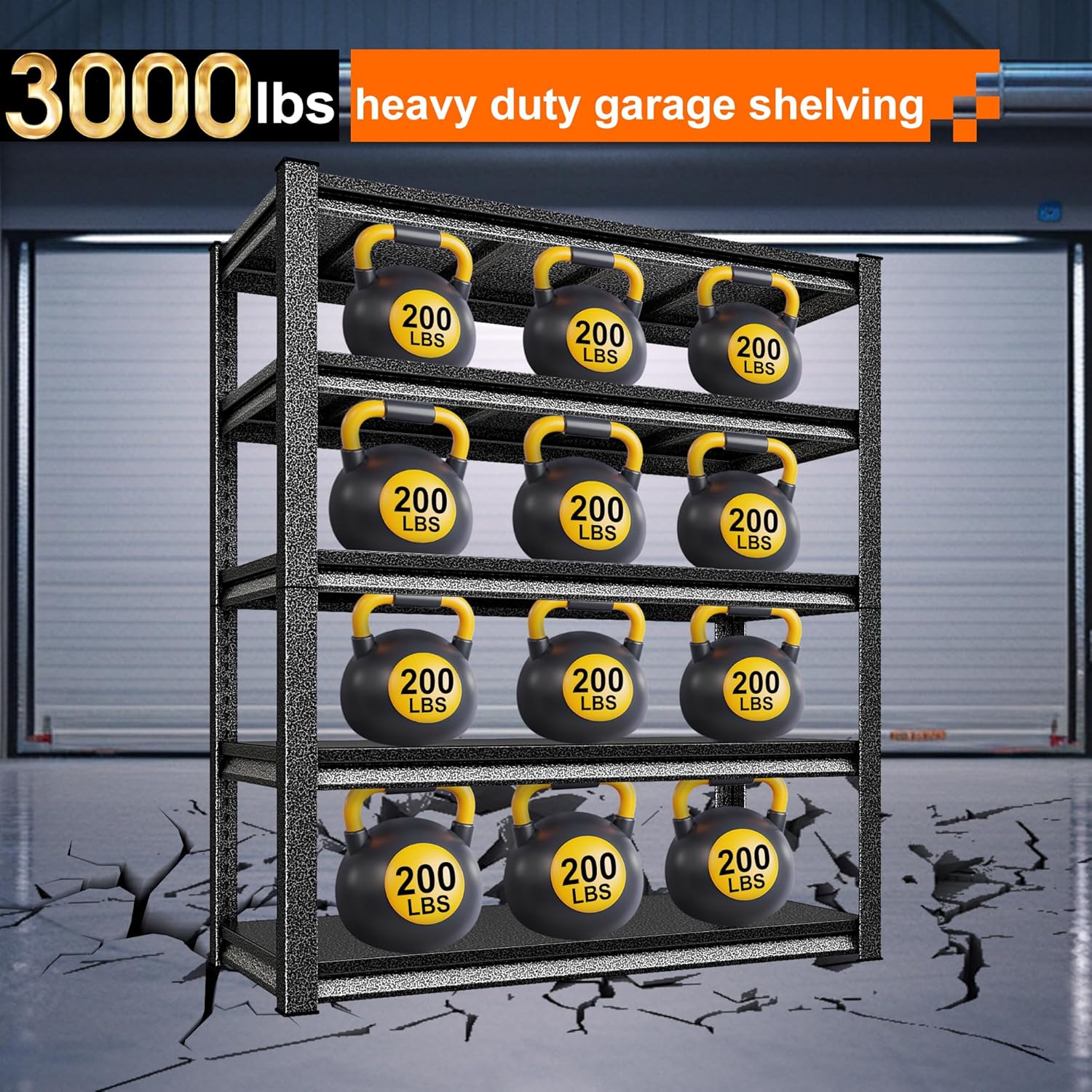 - 【Sturdy and Durable 】: The 5-tier metal shelving unit is made of upgraded premium steel laminates instead of flimsy wood board. No matter how much weight you put within 3000lbs on shelves, the garage shelving will not wobble or shake.
