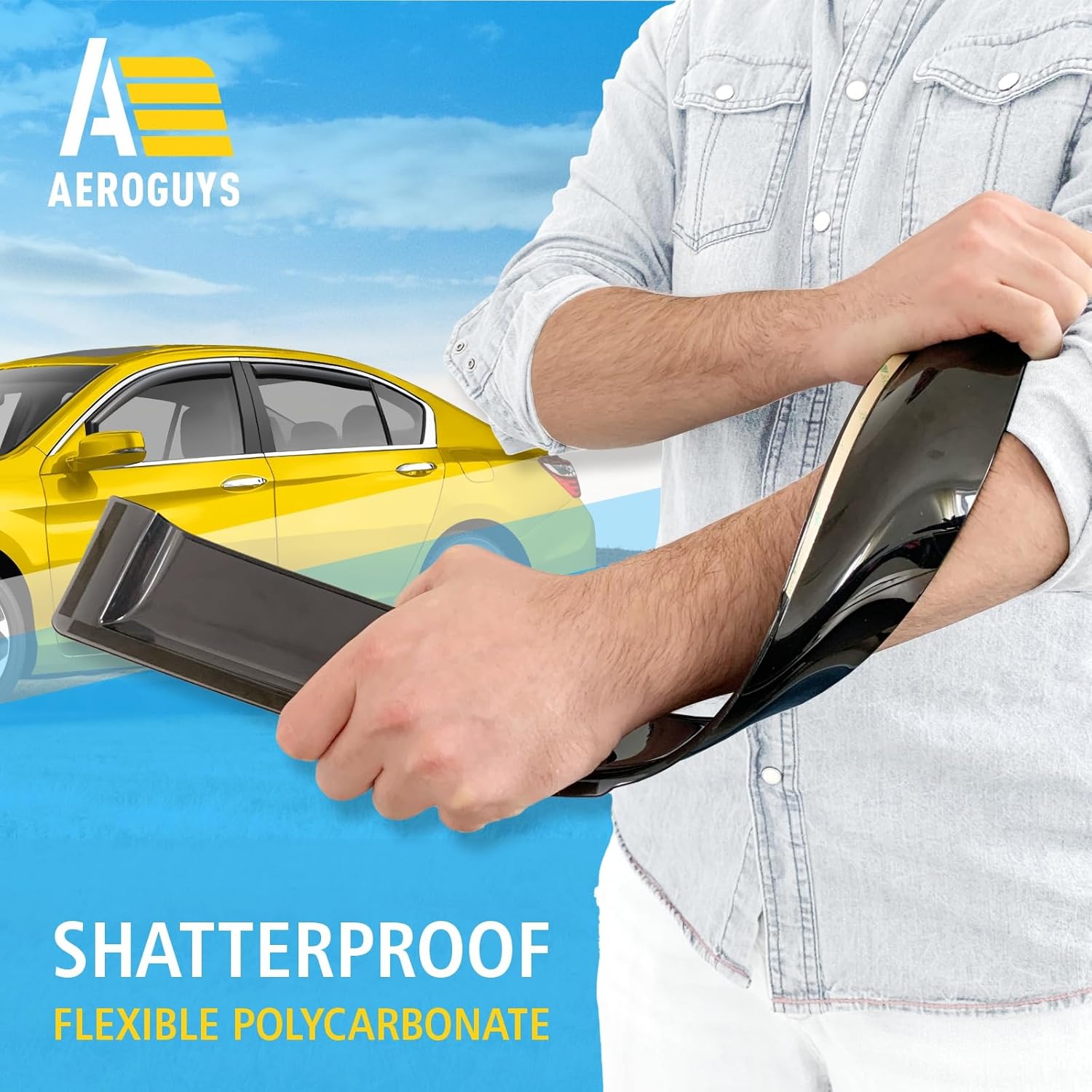 - Incredibly Durable AEROGUYS Auto Window Deflectors – They are made with strong and tough polycarbonate which is clear and scratch-resistant. They also provide UV protection making your ride more comfortable under all weather conditions.