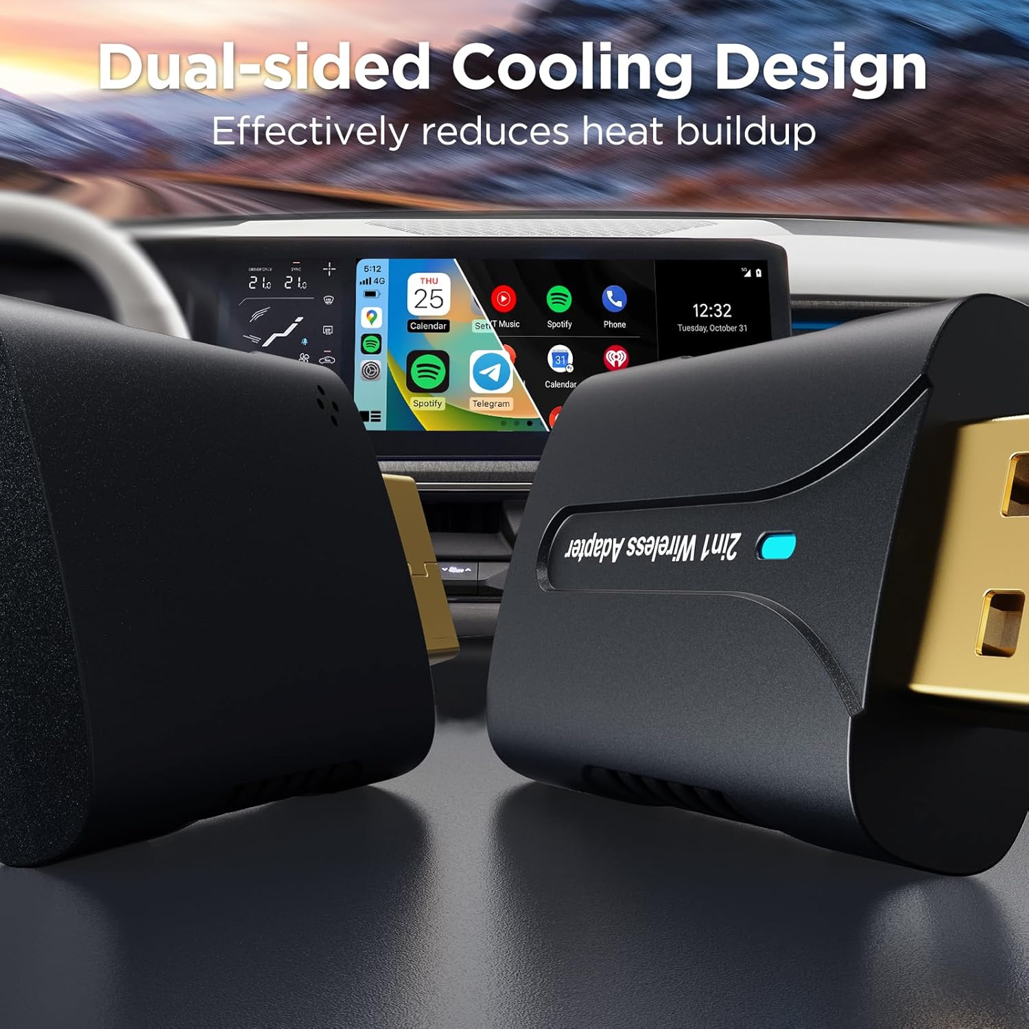 - 2-in-1 Carplay and Android Auto Wireless Adapter: Easily transform wired Android Auto / Carplay into a wireless experience. No additional drivers or apps required. Connect your Bluetooth and WiFi and the wireless adapter will automatically connect to your phone when you start your car, even if your phone is in your pocket or on a call