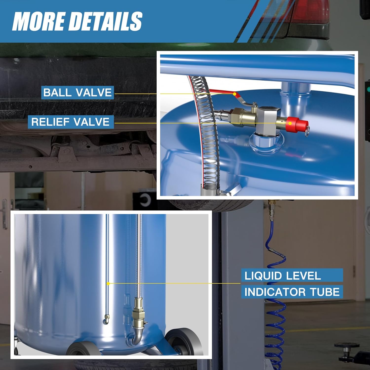 - 【20 Gallon Capacity】LARBANKE waste oil drain tank has a capacity of 20 gallons and can collect waste oil from 8-10 vehicles. The oil drain works on a pneumatic principle to drain waste oil from the tank in a short period of time.