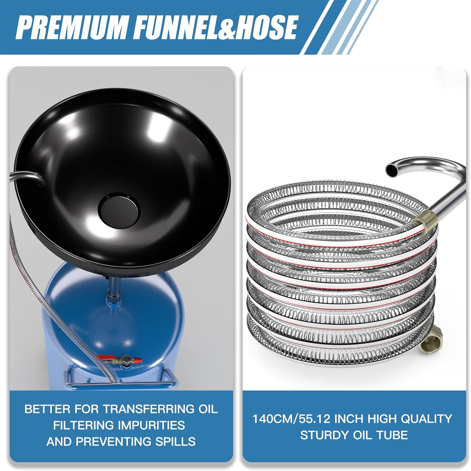 - 【Large Diameter Funnel】: Portable waste oil drainer is designed in funnel shape with 17.9’ diameter, the waste oil drain container ensures fast and more efficient delivery of waste oil and reduces the time spent on oil change jobs.