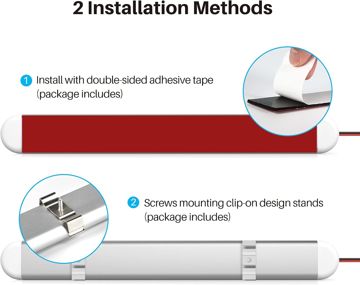 - 【High Quality】- This 12v light fixtures adopts 11.8in extension connecting cable, anti-scratch aluminum alloy foundation and efficient light transmitting PC film to achieve ultimate durability, flexibility and efficient heat dissipation. Stainless steel clips, screws and strong self-adhesive that come with the package makes the installation of this LED interior light strip a breeze and optional.