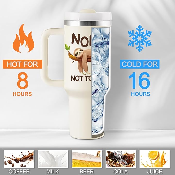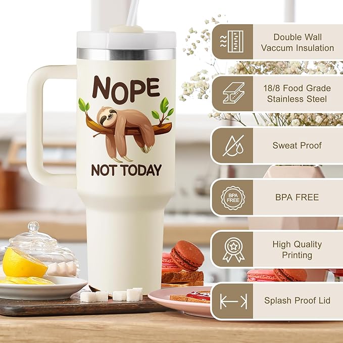- APPLICABLE FOR MANY OCCASIONS: The narrow base fits just about any car cup holder, keeping it right by your side. We also included an ergonomic, comfort-grip handle, so you can easily carry your ice-cold water to work, meetings, the gym or trips out of town. Suitable for a wide range of beverages including coffee, tea, water, juice, and even smoothies. Ideal for sloth lovers gift ideas, sloth stuff for sloth lovers, practical sloth gifts for women.