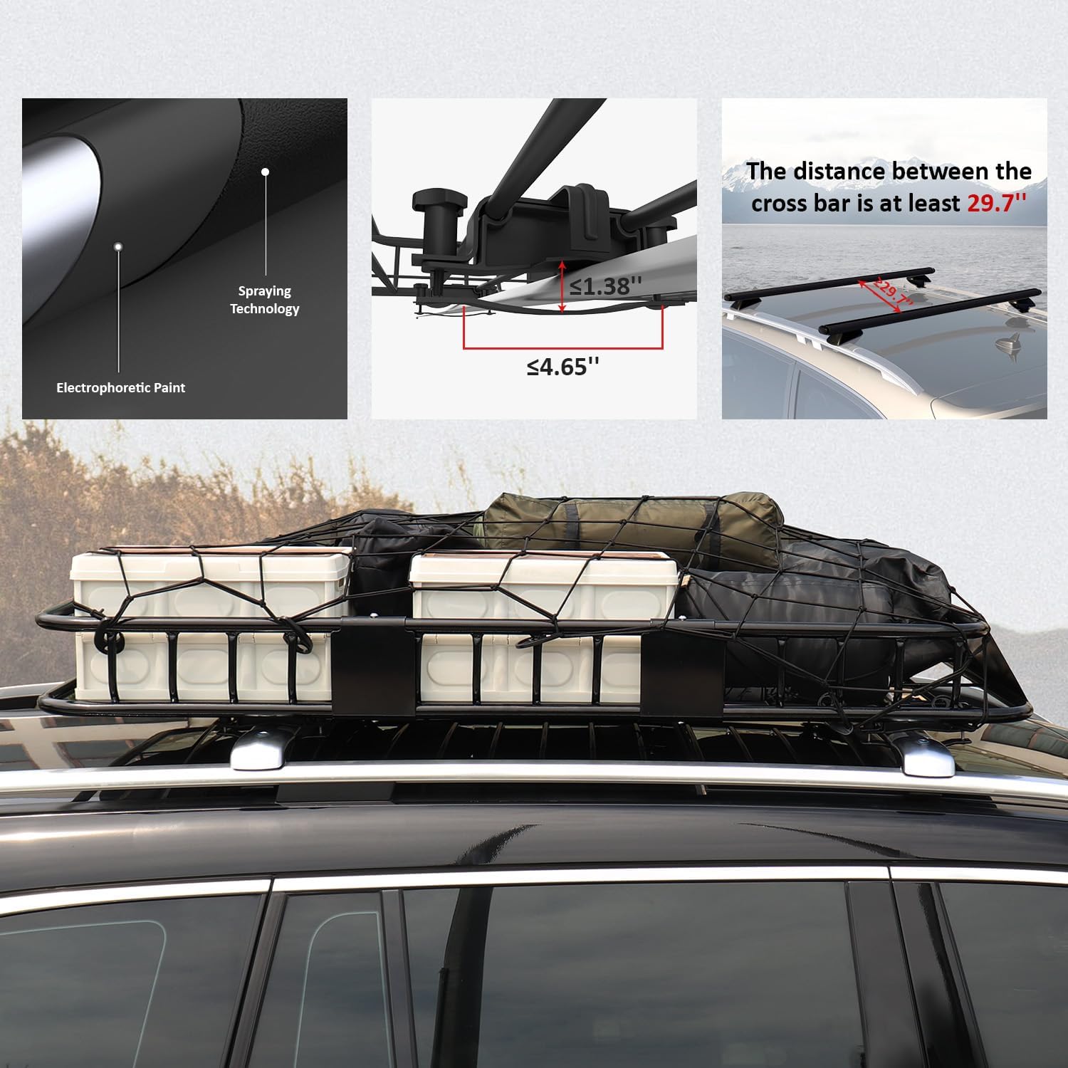 FORWODE Roof Rack Carrier Basket, 64" x 39" Rooftop Cargo Carrier Basket with 250 Lbs Capacity, Rust-Proof Steel Heavy Duty Car Top Luggage Basket