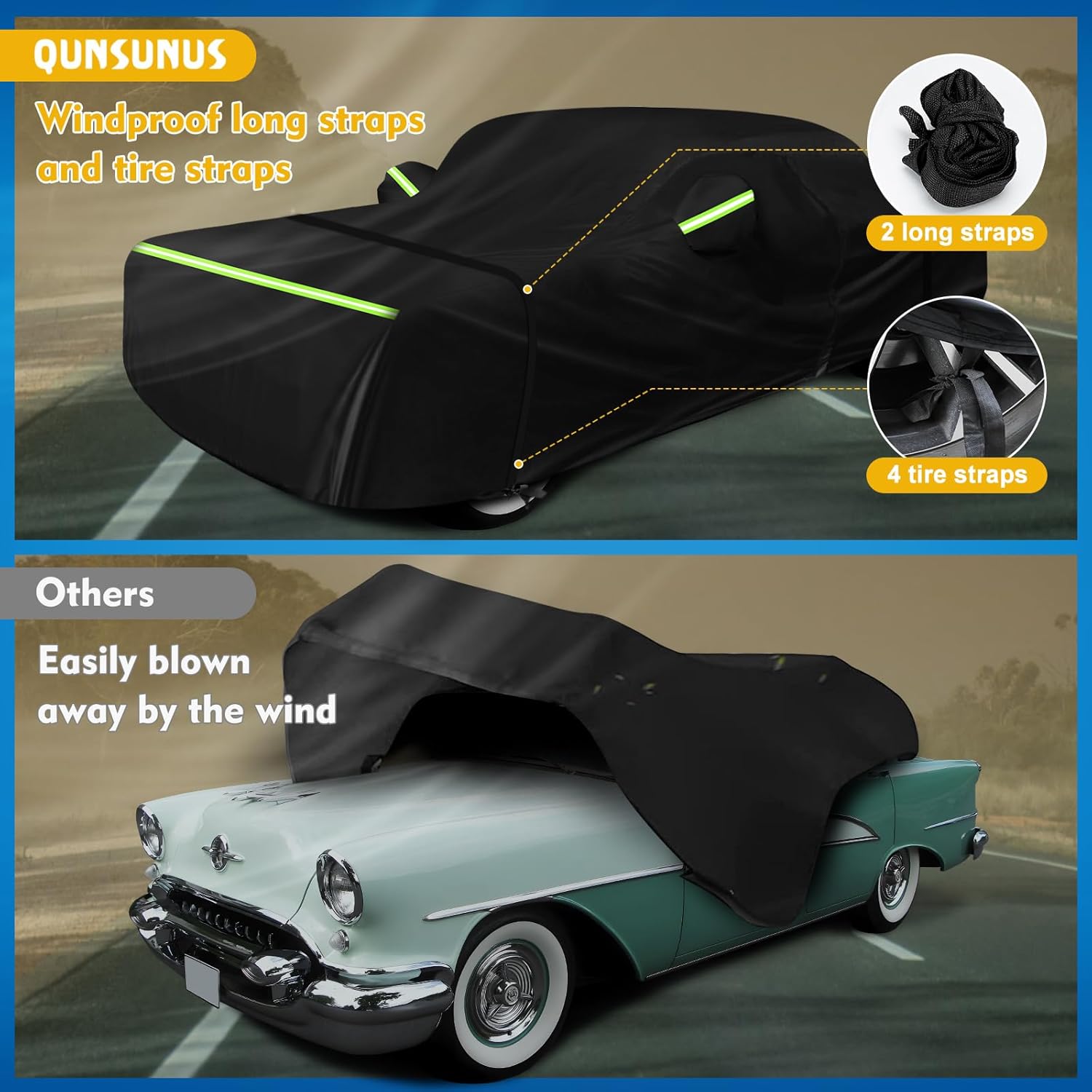 QUNSUNUS Waterproof Car Cover for Oldsmobile 88 1949-1958/1986-1999, Outdoor Car Cover with Zipper, All Weather Full Exterior Cover with Straps and Elastic Edges for Wind, Sun, UV and Dust Protection