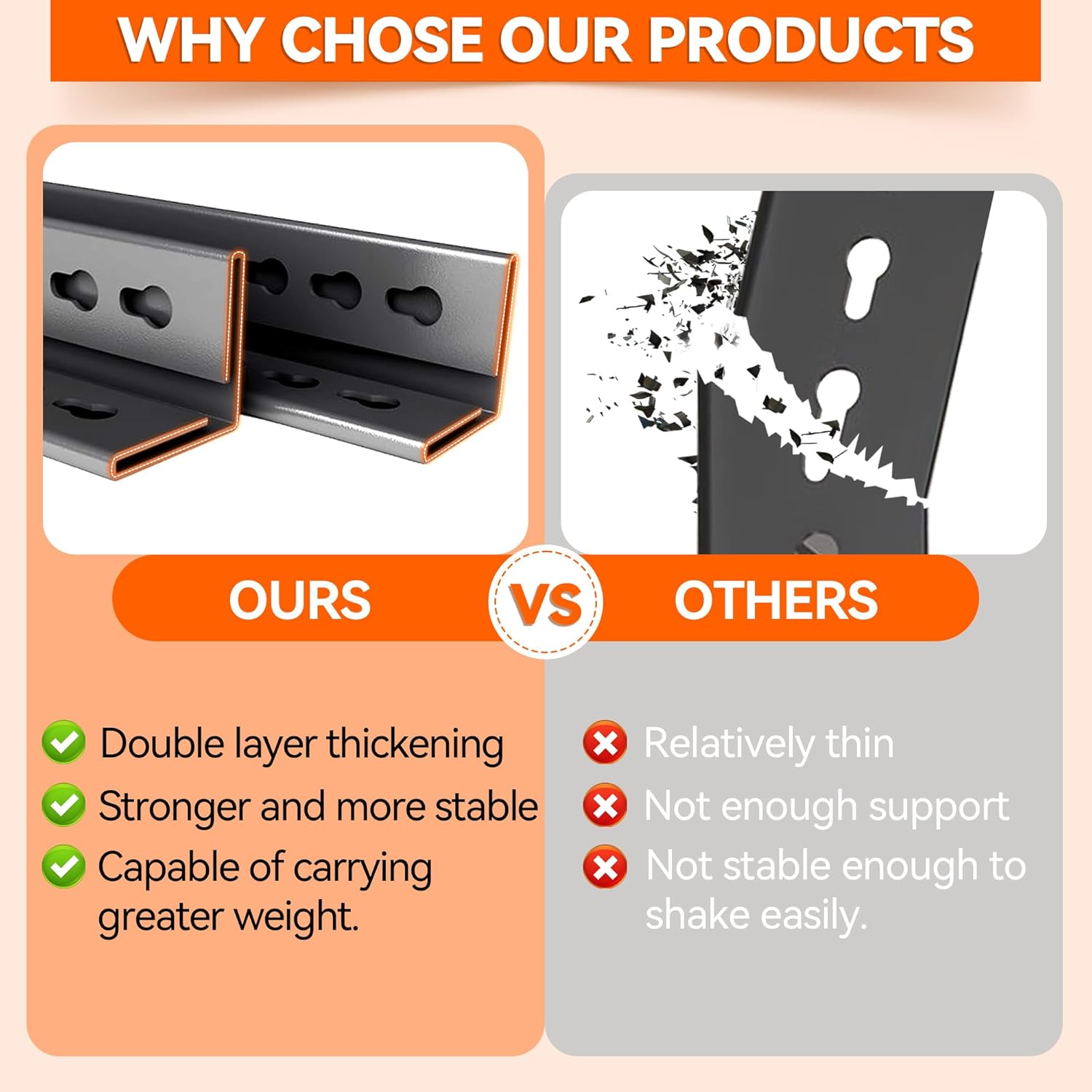 - 【 Upgraded Dual-Layer Columns for Enhanced Stability】 Unlike standard shelves on the market that use single-layer columns, our product features upgraded dual-layer columns that significantly boost stability and load-bearing capacity. The reinforced structure helps distribute the weight evenly, reducing the risk of warping or sagging over time. This ensures the shelf remains stable even under heavier loads. In comparison, shelves with single-layer columns can wobble or bend when storing heavier items, making them less reliable for larger, bulkier tools or materials