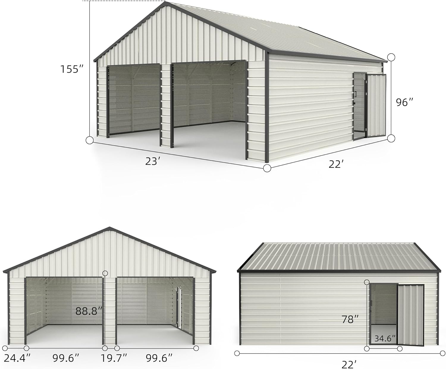 - ๐ก ๐๐๐ซ๐ฌ๐๐ญ๐ข๐ฅ๐ ๐๐ฎ๐ญ๐๐จ๐จ๐ซ ๐๐๐ซ๐๐ ๐: Our 23x22 ft shed offers 500 sq. ft of spacious storage, perfect for housing power tools, farm equipment, pickup trucks, ATVs, or boats. More than just a storage solution, this double garage shed can also serve as an outdoor workshop, farm equipment shed, or even a space for outdoor gatherings. Its adaptable and multifunctional design ensures it meets all your outdoor space needs effortlessly.