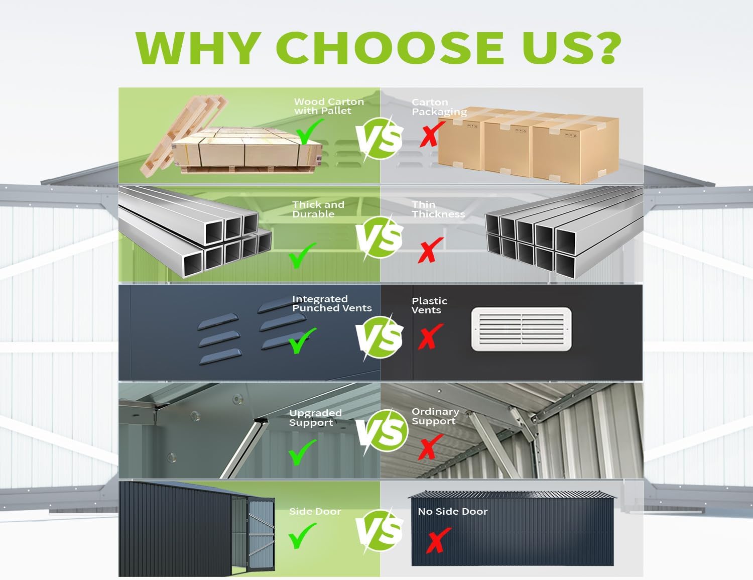- 🏡𝟏𝟎𝟎% 𝐂𝐮𝐬𝐭𝐨𝐦𝐞𝐫 𝐒𝐚𝐭𝐢𝐬𝐟𝐚𝐜𝐭𝐢𝐨𝐧: If you have any questions or encounter any problems while using the outdoor storage shed, please feel free to contact us. We will resolve your concerns within 24 hours. The product comes with a 12-month warranty and a 30-day full money refund. Rest assured to buy, we protect your rights and interests.