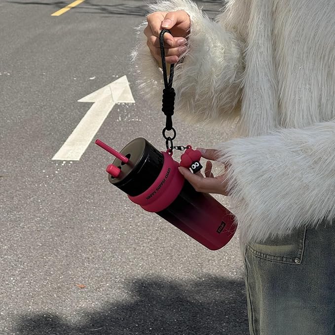 - ❹【Non-slip and portable】: Featuring a silicone cover for a secure hold and a built-in strap, this bottle is easy to carry and won’t slip out of your hand, making it perfect for everyday use.