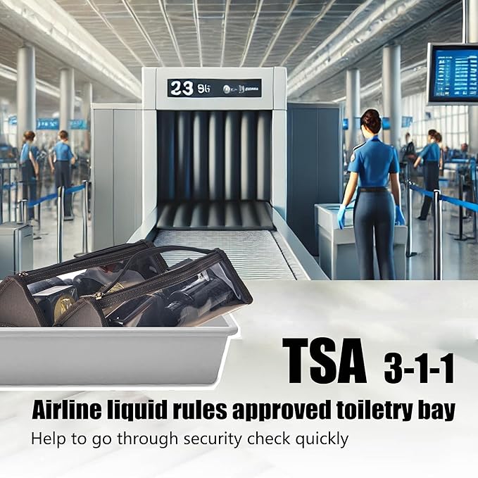 - 【TSA APPROVED】 The TSA certified clear toiletry bag strictly follow 3-1-1 airport regulations, so you don't have to worry about getting through airport security. All makeup bags are made of clear PVC material, so you can see the stored items at a glance, and are BPA-free, safe and durable.