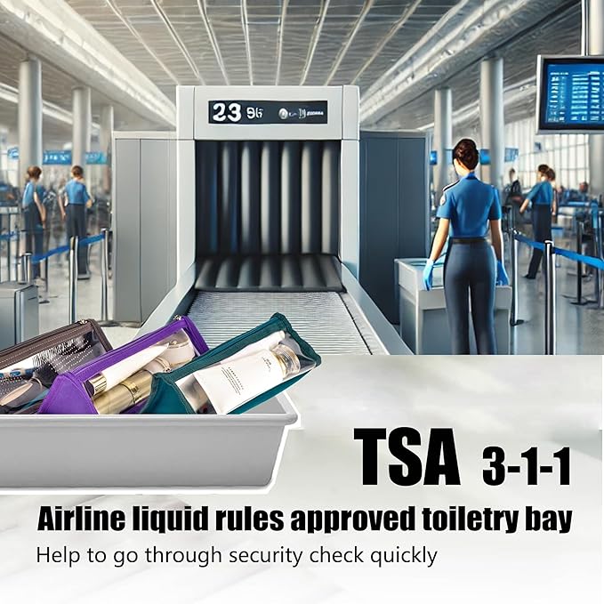 - 【TSA Approved】 The TSA certified clear toiletry bag strictly follow 3-1-1 airport regulations, so you don't have to worry about getting through airport security. All makeup bags are made of clear PVC material, so you can see the stored items at a glance, and are BPA-free, safe and durable.