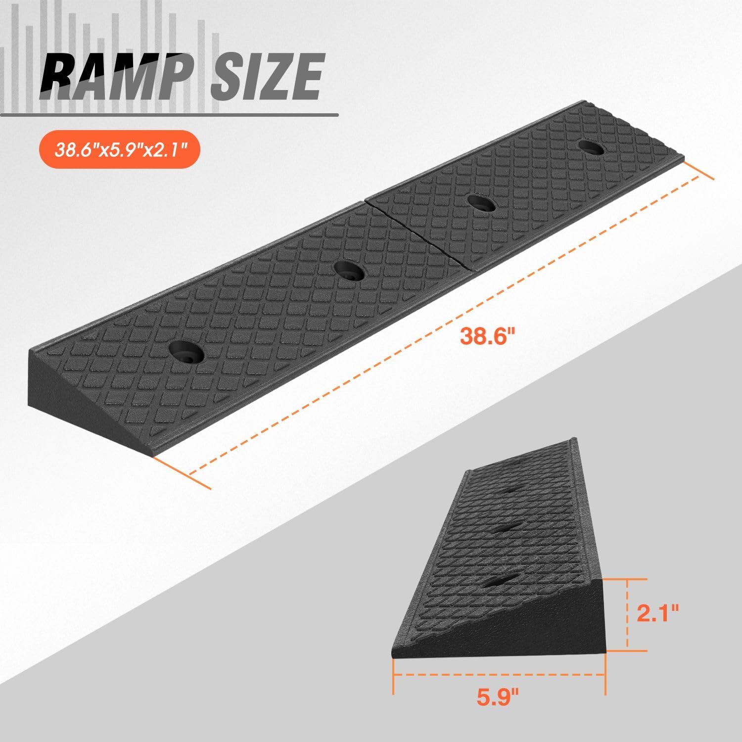 DNA MOTORING 2pcs 2" Rise Rubber Curb Ramp Heavy Duty Loading Driveway Ramp Threshold Ramp 38.6 in L x 5.9 in W x 2 in H for Loading Dock, Warehouse, Wheelchair, Motorcycles, Cars, TOOLS-00643