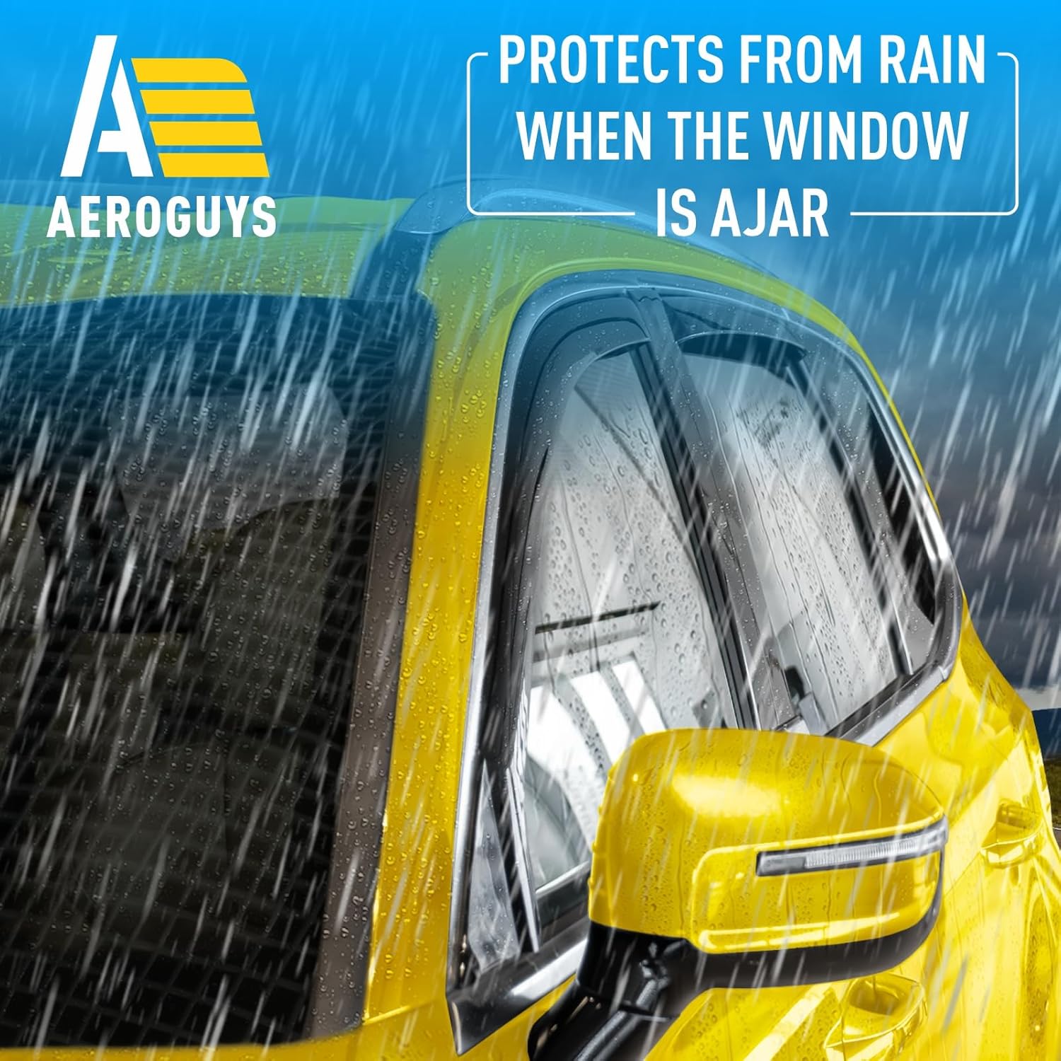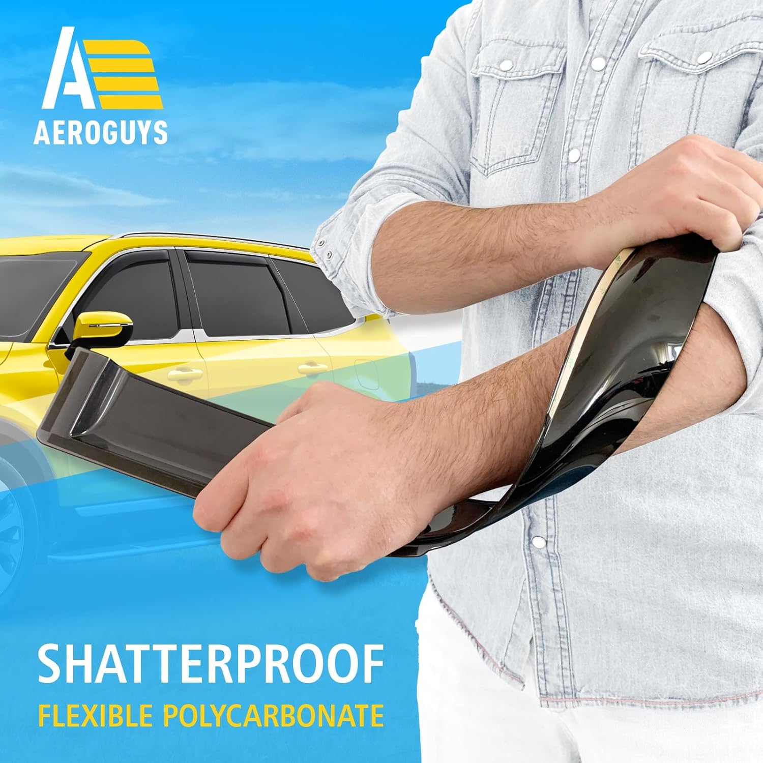 - Incredibly Durable AEROGUYS Auto Window Deflectors – They are made with strong and tough polycarbonate which is clear and scratch-resistant. They also provide UV protection making your ride more comfortable under all weather conditions.